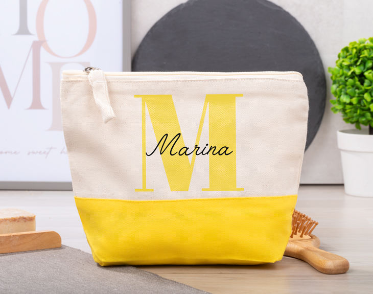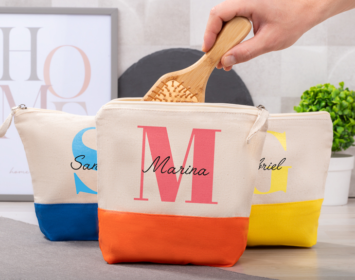 Ahora que el verano ya está aquí, tenemos el accesorio imprescindible que te va a venir de maravilla. Se trata de nuestro neceser bicolor personalizado con diseño "Iniciales de colores". Es perfecto para guardar todas esas cosas de higiene personal como el cepillo de dientes, el peine, la crema. ¡Podrás llevarlo siempre contigo! Este neceser es de color beige y cuenta con una franja que puede ser de color amarillo, naranja o azul. ¡Elige tu favorito! Y lo mejor de todo es que es personalizable, podrás escribir el nombre que tú quieras junto con la inicial. ¡Es genial! Personalizar este neceser bicolor es muy sencillo. El primer paso a seguir consiste en añadir el producto al carrito y entrar al área de personalización. Una vez ahí, ya puedes escribir el nombre que tú quieras. Pronto estará perfecto y listo para regalar. ¡Será un original regalo para viajeros! Medidas: 21,5 x 19 x 7,5 cm