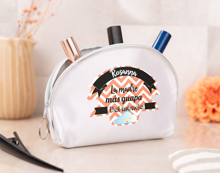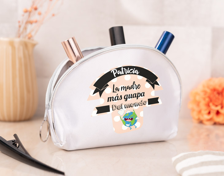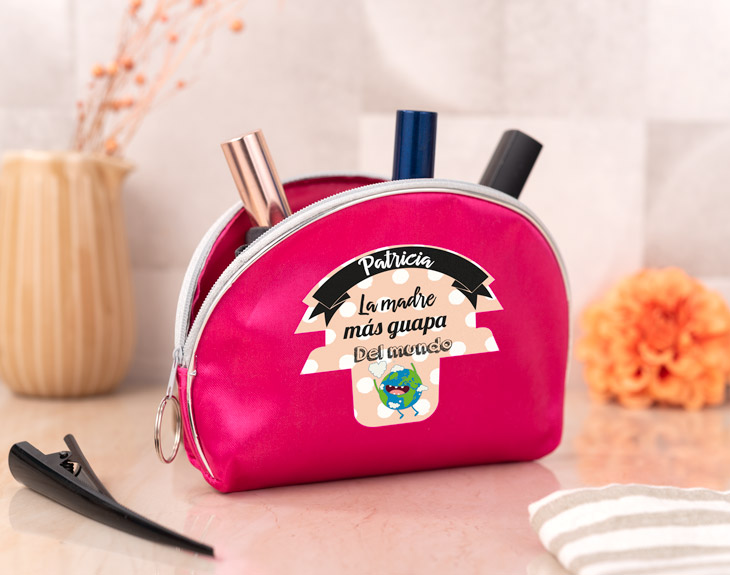 Este es el regalo perfecto si tienes la mamá más guapa del mundo: un práctico neceser personalizado, en el cual podrá guardar todo lo necesario para el aseo cuando esté de viaje. Disponible en dos colores, lo personalizamos con el nombre que tú nos digas. Dimensiones: 18 x 13 cm.