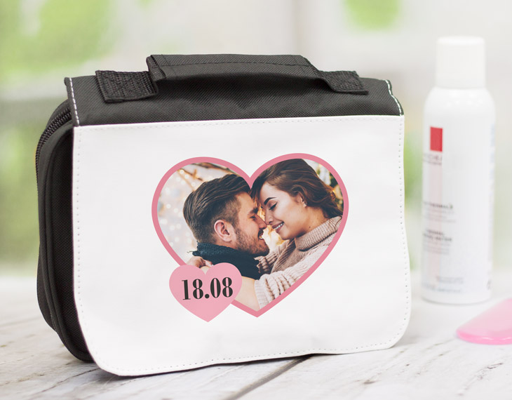 Regálale a tu pareja este original neceser personalizado en el que podrás añadir la foto que quieras en el interior del corazón, además de esto podrás añadir también la fecha del día en el que os conocisteis o comenzasteis vuestra relación. Ya sea el caso de que tu pareja viaje mucho por trabajo, que os guste es viajar juntos o que viva lejos este neceser será el regalo más original. Así será super sencillo tener todos los productos que utilicéis en vuestra higiene diaria a mano y bien organizados. Cuando estéis lejos le traerá muy buenos recuerdos. Este neceser tiene unas medidas de 20 centímetros de alto y 24 centímetros de ancho, un tamaño perfecto para que quepa todo lo necesario y no ocupe mucho.