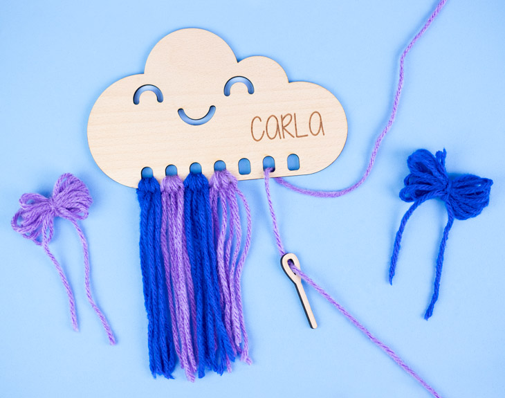 • Nube de madera. • 2 ovillos de lana. • Tarjeta Recordatoria.