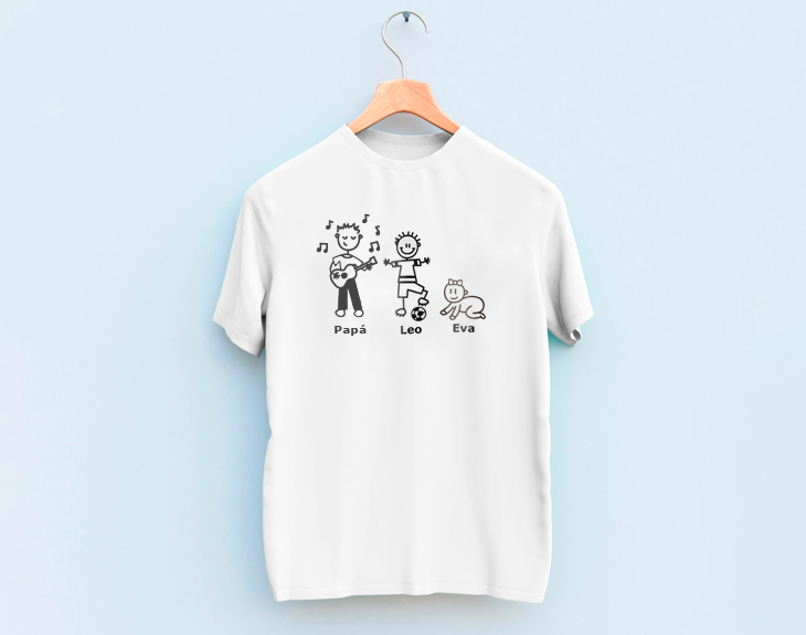 -Podrás diseñar tu propia camiseta familiar con 150 personajes disponibles. -En la camiseta podrás poner máximo 8 personajes. Material: - Algodón: manga corta- 100% algodón; manga larga- 100% algodón.. - Tacto algodón: 100% poliéster cotton touch. Ligeramente translúcida. - Técnica: 100% poliéster (Colores solo disponibles en algodón) Importante: nuestro equipo de personalización se encargará de ajustar la distribución de los personajes en el producto en función de su tamaño para que se vean lo mejor posible. Importante: El color de los nombres y personajes variará según el color de la camiseta que elijas: Personajes blancos: - Camisetas azules de invierno y verano - Camisetas rojas de invierno y verano - Camisetas negras de invierno y verano - Camisetas rosas de invierno Personajes negros: - Camisetas blancas de invierno y verano - Camisetas grises de invierno y verano - Camisetas amarillas de verano - Camisetas verdes de verano - Camisetas rosas de verano Importante: Las medidas son aproximadas, pueden variar 5cm por encima o por debajo.