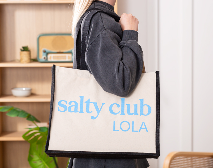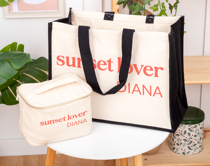 ¡Ahora que llega el verano, tenemos el kit para disfrutar al máximo! Se trata de nuestro kit de bolso capri y neceser personalizado con diseño "Beach Style". Es ideal para llevarlo a la playa o a la piscina. ¡Se convertirá en tu accesorio imprescindible para este verano! Este kit incluye un neceser ideal para guardar la cartera, las llaves, el móvil... y viene con un bolso a juego. Lo mejor que tiene es que es personalizable, podrás escribir el nombre que tú quieras y nosotros nos encargamos de poner en el bolso y en el neceser. ¡Quedará genial! Personalizar este kit de bolso y neceser es muy sencillo. El primer paso a seguir consiste en añadir el producto al carrito y entrar al área de personalización. Una vez ahí, ya puedes escribir el nombre que tú quieras. Pronto estará perfecto y listo para regalar. ¡Será un original regalo para verano! Especificaciones del bolso: Medidas: 39 x 32 x14 cm. Asas de mano de algodón (longitud: 73 cm). Material: 100% algodón y yute. Especificaciones del neceser: Medidas: 23 x 14cm