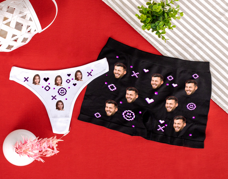 La mejor forma de avivar la llama del amor y la pasión con tu pareja es haciéndole un regalo diferente y juguetón como este pack de calzoncillo y tanga personalizado. Sorprende a esa persona que tanto quieres con este divertido set de ropa interior que podéis disfrutar juntos en todas vuestras veladas románticas. Y es que si os gusta ir conjuntados de vez en cuando, este regalo es perfecto para llevar también la misma ropa interior en vuestros momentos más íntimos. ¡Os encantará! No hay mejor momento para sorprender a tu novio o novia con este original set personalizado que en vuestro aniversario, San Valentín, su cumple o cualquier otra fecha especial para vosotros. Atrévete a dejar sin palabras a tu pareja con un regalo fuera de lo común y que seguro que le saca alguna que otra sonrisilla. Además, ambas cositas son tan cómodas que se convertirán en vuestras prendas favoritas porque no dejaréis de usarlas. Este pack incluye unos calzoncillos negros y un tanga blanco que podéis personalizar a vuestro gusto con este precioso diseño. Personalizar este pack de ropa interior es súper sencillo. Añade el producto al carrito y entra en el área de personalización. Ahí, podrás personalizar cada prenda por separado para añadir la cara que queráis en cada uno junto a nuestro diseño lleno de emojis de lo más retro y vintage. Quedará genial y lo mejor es que... ¡Triunfarás con tu pareja! Especificaciones tanga: Medidas: 30 x 21,5 cm. Talla: S, única. Material: algodón natural. Color: blanco Especificaciones calzoncillo: - Talla M: 33,5 x 25 centímetros. - Talla L: 36 x 26 centímetros. - Talla XL: 47 x 31 centímetros. Material: poliamida (90%) y elastano (10%). Importante: se puede lavar a una temperatura máxima de 30 grados. No es recomendado usar lejía ni secarlo en la secadora. No se debe planchar.