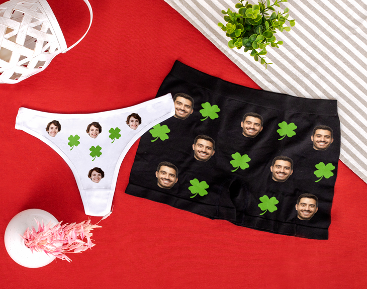 Si tu pareja es tan especial para ti como encontrar un trébol de cuatro hojas, hazle el mejor regalo del mundo: ¡nuestro pack de calzoncillo y tanga personalizado! Es un detalle único y muy diferente ideal para sorprender a tu pareja en cualquier momento especial. Pero si sois de esas parejas a las que les gusta ir conjuntados de vez en cuando, este set es perfecto para vosotros, porque iréis iguales hasta en vuestra velada más romántica. ¡Es genial! Vuestro aniversario, San Valentín, su cumple o cualquier otra fecha especial, son los mejores momentos para regalar este original set personalizado con el que triunfarás con tu novio o novia. Olvídate de los típicos regalos aburridos que luego nunca se utilizan y sorprende a esa persona que tanto quieres con este detallito tan atrevido y especial para las parejas más juguetonas. Lo mejor es que son tan cómodos que se convertirán en vuestras prendas favoritas. ¡Son geniales! Este pack incluye unos calzoncillos negros y un tanga blanco que podéis personalizar a vuestro gusto con este precioso diseño de tréboles. Personalizar este pack de ropa interior es muy fácil. Añade el producto al carrito y entra en el área de personalización. Ahí, podrás personalizar cada prenda por separado para añadir la cara que queráis en cada uno junto a este diseño tan guay y especial. Quedará genial y lo mejor es que... ¡Triunfarás con tu pareja! Especificaciones tanga: Medidas: 33,5 x 21,5 cm. Talla: S, única. Material: algodón natural. Color: blanco Especificaciones calzoncillo: - Talla M: 33,5 x 25 centímetros. - Talla L: 36 x 26 centímetros. - Talla XL: 47 x 31 centímetros. Material: poliamida (90%) y elastano (10%). Importante: se puede lavar a una temperatura máxima de 30 grados. No es recomendado usar lejía ni secarlo en la secadora. No se debe planchar.
