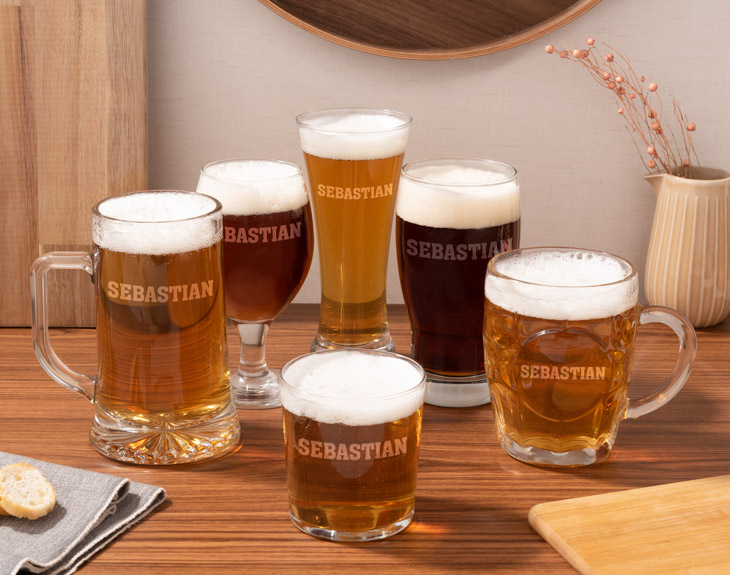 Este pack de 6 jarras de cerveza es perfecto para los auténticos cerveceros. Es un regalo original con el que podrás quedar como un Rey o una Reina, ya que incluye 6 jarras de cerveza grabadas con el texto o nombre que tú quieras. El pack incluye: - 1 jarra de cerveza (50cl) - 1 Jarra de cerveza Weizen (30cl) - 1 Pinta de cerveza (38cl) - 1 Copa de cerveza (35cl) - 1 Vaso de cerveza (37cl) - 1 Jarra de cerveza bávara (55cl) ¡Seguro que le encanta! Es un regalo elegante y original para un gran cervecero.