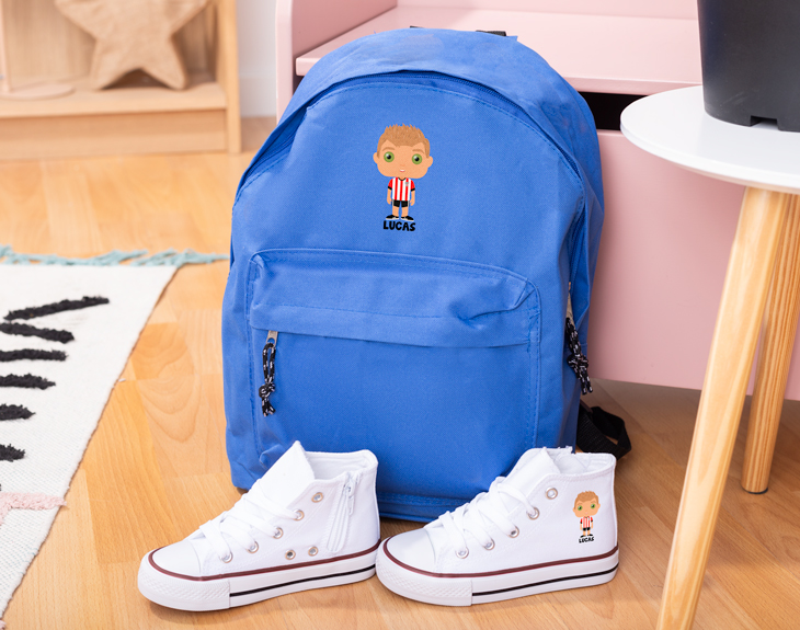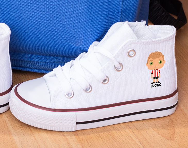 • Mochila de color personalizada. • Zapatillas altas blancas personalizada. • Tarjeta Recordatoria.