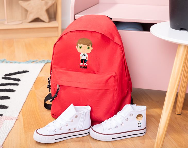 Ahora que llega el verano, se acerca la época de los campamentos. Si los más peque de la casa tienen muchas ganas de ir, tenemos algo que no les puede faltar. Se trata de nuestro pack con mochila y zapatillas personalizado con diseño "Familia Tinok". ¡Será la envidia de todo el campamento! Este pack incluye una mochila para guardar todo lo necesario en las excursiones y además, unas zapatillas súper chulas. Y lo mejor es que es personalizable, podrás crear a este avatar como tú quieras. Hay un montón de accesorios y rasgos distintos para que te puedas representar a la perfección. ¡Quedará genial! Personalizar este pack con mochila y zapatillas es muy sencillo. El primer paso a seguir consiste en añadir el producto al carrito y entrar al área de personalización. Una vez ahí, ya puedes crear a este avata como tú quieras. ¡Es muy divertido! Pronto estará perfecto y listo para regalar. ¡Será un original regalo para verano! Medidas de la mochila: 38 cm x 40 cm.