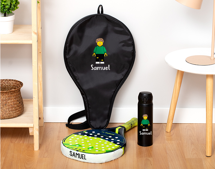 Si tu descubrimiento de este año ha sido el pádel, tenemos algo que te va a encantar. Se trata de nuestro pack para pádel "Familia Lego", viene con una funda y un protector para tu raqueta y un termo para que te mantengas siempre bien hidratado. ¡Es lo más! Este kit para pádel también se puede convertir en un regalo muy original para fans de los Lego. Porque el estampado que tiene es personalizable. Esto quiere decir que tú creas al personaje Lego. Hay un montón de accesorios y rasgos diferentes para elegir, seguro que consigues que le representen. ¡Podrás crear al Lego más deportivo de todos! Esta funda es perfecta para guardar tu raqueta porque tiene un único bolsillo con cremallera. Además, podrás llevar esta bolsa colgada gracias a su correa ajustable. ¡Lo tiene todo! Lo único que tienes que hacer para personalizar este pack al completo es añadir el producto al carrito y entrar en el área de personalización. Una vez ahí, ya puedes crear a este avatar para la funda y el termo y ya solo te queda escribir el nombre que irá en el protector. ¡Tendrás el mejor kit para pádel del mundo! Medidas funda: 50 x 30 x 3 cm. Longitud del asa: 91 cm (estirada al máximo) Medidas protector: 4,5 cm x 39 cm. Especificaciones del termo: - Altura de la botella: 22,5 cm. - Diámetro de la base: 6 cm. - Capacidad: 400 ml. - Colores disponibles: negro, blanco y plateado. - Material: Acero inoxidable.