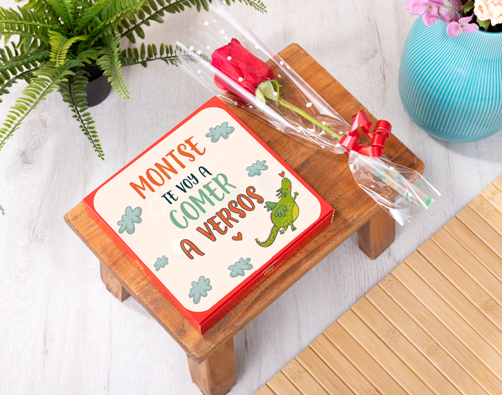 Los pequeños detalles marcan la diferencia. Los bombones son ideales para endulzarle el día a tu persona favorita y sacarle una sonrisa. Abrir el apetito para un día lleno de aventuras, disfrutar juntos mientras veis una película, recuperar fuerzas tras horas de paseo, este pack personalizado será tu mejor aliado. Con esta caja de bombones personalizada sorprenderás. Para que esa persona que tanto significa para ti tenga un Sant Jordi espectacular, este pack personalizado será ideal. Añade el nombre de esa personita en nuestro diseñador y la magia estará hecha. El día de Sant Jordi podrás regalar más que una rosa, regalarás una historia de cuento con el mejor acompañamiento, unos bombones que disfrutará como nunca. Con nuestro diseño inspirado en la leyenda de Sant Jordi podrás dedicarle unas bonitas palabras a esa persona tan especial. ¡Le encantará!