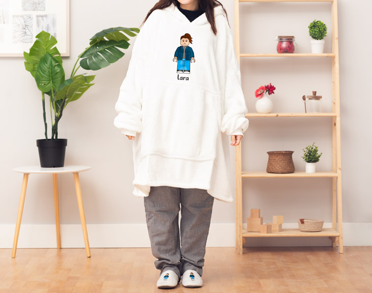 Si eres fan de los planes caseros y uno de tus favoritos es jugar con las famosas piezas lego, tenemos algo que te va a encantar. Se trata de nuestro pack de snuggie y pantuflas “Familia Lego”, sin duda, se convertirá es el outfit oficial de los planes caseros. Es comodísimo y te mantendrá bien arropado en las tardes frías de invierno. ¡Un original regalo para frioleros! Este pack de invierno está formado por unas pantuflas y un snuggie. Puedes elegir la talla de las zapatillas de estar por casa y el color del snuggie (mezcla de sudadera y batamanta). Pero esto no termina aquí. ¡los productos de este pack son personalizables! Lo que quiere decir que tú creas a estos personajes lego como tú quieras. Existen un montón de accesorios y rasgos diferentes para elegir, seguro que consigues que te representen. Este pack puede ser un regalo perfecto para que esa persona que en invierno siempre pasa tanto frío este bien arropada con nuestros productos. Personalizar este pack de snuggie y pantuflas es súper sencillo. El primer paso a seguir consiste en añadir el producto al carrito y entrar al área de personalización. Una vez ahí, escoges la talla de las pantuflas y el color del snuggie. Y ya podrás crear desde cero a estos personajes Lego, ¡ya verás qué divertido! Pronto estarán perfectos y listos para regalar. ¡Un original regalo para los fans de los Lego! Información Snuggie: Este producto es de talla única. Material: poliéster. Color: blanco o negro. Medidas aproximadas: 90 centímetros de largo x 90 centímetros de ancho (de axila a axila) Información pantuflas: Talla: · Grande: 29,5cm x 15cm · Pequeña: 26cm x 11,5cm Material: algodón/poliéster.