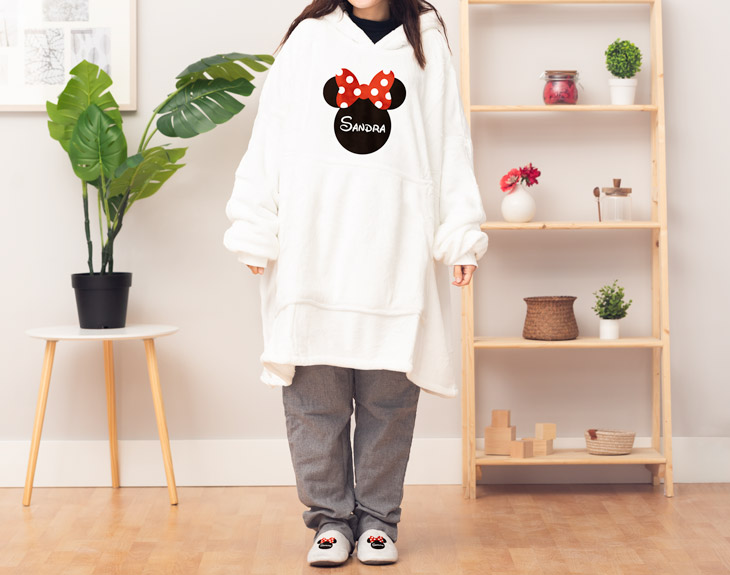 ¿Tú también conoces a esa persona súper fan de Mickey & Minnie? Si estás pensando en tener un detalle con él o ella, nosotros tenemos el regalo perfecto. Se trata de nuestro pack snuggie y pantuflas “Mickey & Minnie”, perfecto para los fríos meses de invierno. ¡Gracia a este pack, pasar frío en casa se acabará! Este pack de invierno está formado por unas pantuflas y un snuggie. Puedes elegir la talla de las zapatillas de estar por casa, por dentro están bien forradas con pelo para mantener el calor de los pies. El snuggie es la combinación perfecta de sudadera y batamanta, que puede ser de color blanco o negro. Y lo más especial es: el estampado de Mickey & Minnie tan chulo. Personalizar este pack de snuggie y pantuflas es súper sencillo. El primer paso a seguir consiste en añadir el producto al carrito y entrar al área de personalización. Una vez ahí, escoges las tallas de las pantuflas y eliges el color del snuggie. Eliges el estampado y ya puedes escribir el nombre de esa persona tan especial. Pronto estará perfecto y listo para regalar. ¡Un original regalo para frioleros! Información Snuggie: Este producto es de talla única. Material: poliéster. Color: blanco o negro. Medidas aproximadas: 90 centímetros de largo x 90 centímetros de ancho (de axila a axila) Información pantuflas: Talla: · Grande: 29,5cm x 15cm · Pequeña: 26cm x 11,5cm Material: algodón/poliéster.
