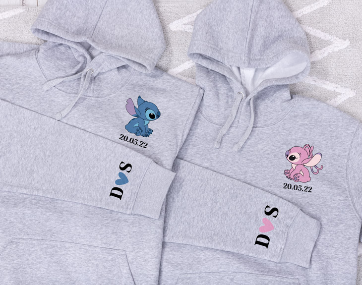 Si hay algo que tenemos claro es que la pareja más adorable no es de este mundo. Y sí, nos referimos a Stitch y Angel, que nos han robado el corazón a todos. Si tu pareja y tú os consideráis tan monos como ellos dos, os encantará llevarlos en este pack de dos sudaderas personalizadas. El regalo perfecto para San Valentín y que conseguirá dejar a tu otra mitad sin palabras porque mola un montón. Si todos os dicen que sois la pareja más adorable del mundo y os gusta llevar a veces ropa conjuntada, está claro que este original regalo está hecho para vosotros. Este 14 de febrero es el momento ideal para haceros con las mejores prendas del mundo y sin duda las más románticas. Además de llevar este precioso diseño en el pecho y en la manga, podrás elegir de qué color y talla quieres cada sudadera. El último paso es personalizar este pack de sudaderas para que sean las más monas del mundo. Añade el producto al carrito y entra en el área de personalización. Desde ahí podrás personalizar tanto el diseño del pecho como el de la manga. Fíjate en la foto o deja volar tu imaginación y crea la combinación que más te guste para que el diseño quede perfecto. Recuerda elegir la letra blanca si la sudadera es oscura y la letra negra si la sudadera es calara. ¡No habrá mejor regalo que estas sudaderas! Colores disponibles: gris, negro o azul marino. Tallas disponibles: S, M, L, XL, XXL. Importante: Las medidas son aproximadas, pueden variar 5 cm por encima o por debajo.