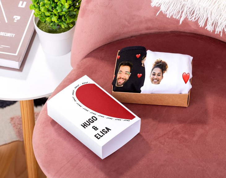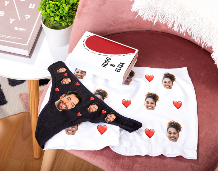 Imagina la cara de tu pareja al recibir este original pack de tanga y calzoncillo en cajita personalizada con diseño "Corazones con foto". Un detalle único que aportará un toque divertido y romántico a la noche más especial del año. Haz que este 14 de febrero sea inolvidable con un regalo tan original y especial que dejará a tu amor sin palabras. Este pack tan divertido incluye un tanga para ella y un calzoncillo para él. Podrás elegir el color de ambas prendas y la talla, si es posible. Además, viene con una preciosa caja personalizada para guardar este detalle tan especial. ¡Seguro que se convertirá en vuestra ropa interior favorita! Personalizar este pack es muy sencillo. Añade el producto al carrito y entra al área de personalización. Allí, lo primero que tienes que hacer es elegir colores y tallas de la ropa interior. Después, ya podemos pasar con el diseño. Podrás añadir vuestras caras junto a estos corazones y también el texto que quieras para la cajita. Así de fácil. ¡Será el mejor regalo para San Valentín! Especificaciones calzoncillo: - Tallas: - Talla M: 33,5 x 25 centímetros. - Talla L: 36 x 26 centímetros. - Talla XL: 47 x 31 centímetros. - Material: poliamida (90%) y elastano (10%). - Color: negro o blanco. Especificaciones del tanga: - Medidas: 30 x 17,5 cm. - Talla: S (única) - Material: algodón natural. - Colores disponibles: negro, rojo y blanco. Medidas de la cajita: 14x9,5 cm. Importante: se puede lavar a una temperatura máxima de 30 grados. No es recomendado usar lejía ni secarlo en la secadora. No se debe planchar.