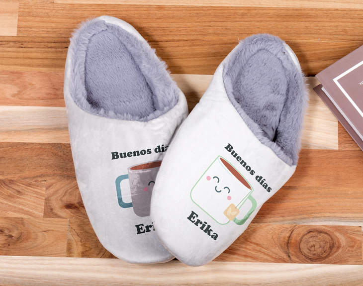 ¿Tú también conoces a esa persona que siempre se golpea el dedo meñique del pie por andar descalzo por casa? ¿O a esa persona que siempre tienen los pies congelados? Estas pantuflas son la solución. Le protegerán bien los pies y, además, son súper calentitas. ¡No se las quitará ni para dormir! Son el regalo perfecto para un cumpleaños, amigo invisible o para alguna ocasión especial. Sin duda, lo más original y especial que tienen es el diseño tan adorable, se puede elegir entre cuatro estampados diferentes entre: una taza de café, de té, una cerveza o una copita de vino. ¡Elige tu bebida favorita y personalízalo con tu nombre! Además, puedes escribir el mensaje que tú quieras. ¡Estas zapatillas de estar por casa serán las mejores aliadas para combatir la llegada del invierno! Para personalizar estas pantuflas, lo primero es añadir el producto al carrito y entrar al área de personalización. Una vez ahí, escribes el mensaje y el nombre que quieras y nosotros nos encargamos de que quede perfecto para regalar. Talla: 26cm x 11,5cm (36-38). Material: algodón/poliéster.