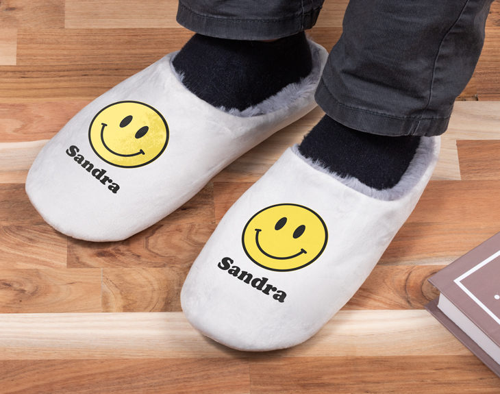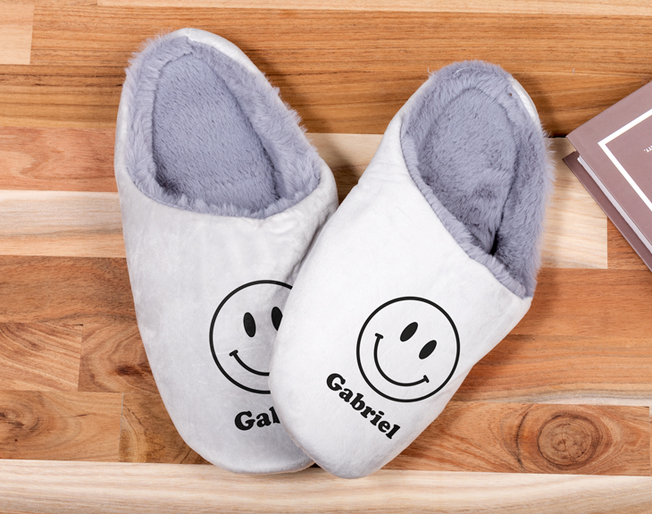 Si lo que buscas es comodidad y calor cuando llegas a casa, estas pantuflas personalizadas son ideales. Ya no volverás a andar descalzo/a por tu casa. Y es que, como sabemos que no hay mejor sensación que cambiarse los zapatos al llegar a casa después de un largo día, estas zapatillas pueden convertirse en un regalo muy original. Imagina cómo de especial se sentirá esa persona cuando reciba sus propias pantuflas diseñadas exclusivamente para él o ella. Nuestras zapatillas de estar por casa son sinónimos de suavidad y confort, están fabricadas algodón y el interior está acolchado con un revestimiento afelpado de color gris. Y tienen la suela antideslizante. Tienen un estampado muy chulo con el diseño de una carita sonriente, puedes elegir la que más te guste. ¡Se convertirán en tus aliadas para combatir en frío el invierno! Sin duda, estas pantuflas con carita sonriente te robarán el corazón. Y te preguntarás… ¿Cómo se personalizan estas pantuflas? Lo primero es añadir el producto al carrito y entrar al área de personalización. Una vez ahí, escribes el nombre que tú quieras y nosotros no encargamos de que quede perfecto para regalar. Talla: 26cm x 11,5cm (36-38). Material: algodón/poliéster.