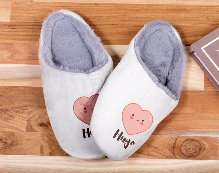 ¿Se acerca el invierno y quieres tener un detalle con esa persona tan especial? Sin duda, este es el mejor regalo que puedes hacer. Se trata de nuestras pantuflas personalizadas. Son ideales para proteger y mantener bien calentitos los pies. ¡No se las quitará ni para dormir! Además, ¿acaso hay mejor sensación que llegar a casa y cambiarse los zapatos por otros más cómodos? ¡Está claro que no! Estas zapatillas de estar por casa son sinónimos de suavidad y confort, están fabricadas algodón y el interior está acolchado con un revestimiento afelpado de color gris mientras que el exterior es blanco. Cuentan con una suela antideslizante para evitar resbalones. Aunque, sin duda, lo mejor es su diseño tan adorable, tiene estampado un corazoncito sonriente, ideal para demostrarle todo el amor que sientes por esa persona tan especial. Y te preguntarás… ¿Cómo se personalizan estas pantuflas? Lo primero es añadir el producto al carrito y entrar al área de personalización. Una vez ahí, solo tienes que escribir el nombre o el mensaje que quieras y terminas la compra. Nosotros lo dejamos listo para regalar. ¡Quedará perfecto! Talla: 26cm x 11,5cm (36-38). Material: algodón/poliéster.