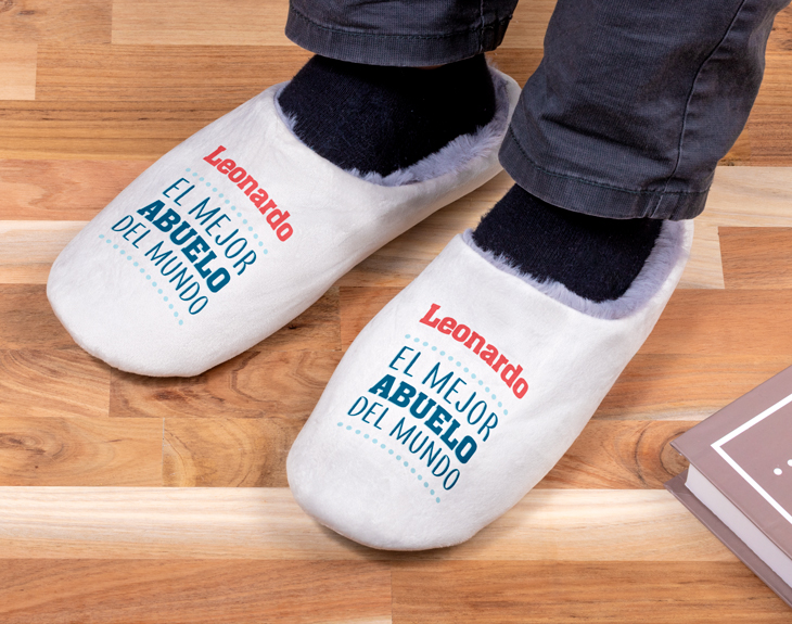 Para el abuelo más especial, estas pantuflas personalizadas "El mejor abuelo del mundo" son el regalo perfecto. Con un diseño emotivo y la posibilidad de añadir su nombre, ¡este detalle seguro le hará sonreír y sentirse muy querido! No hay nada como disfrutar de un merecido descanso, y con estas pantuflas personalizadas, tu abuelo podrá hacerlo con total comodidad. Confeccionadas en un material suave y acogedor, estas zapatillas se convertirán en su compañero perfecto para relajarse en casa. Su diseño en tonos suaves y su interior acolchado garantizan que sus pies estén bien cuidados mientras disfruta de su tiempo libre. ¡El mejor regalo para abuelos! Lo mejor es que puedes hacerlas aún más especiales personalizándolas con el nombre de tu abuelo. Solo tienes que añadir el producto al carrito, entrar en el área de personalización y escribir el nombre que quieras que aparezca en las pantuflas. En pocos pasos, tendrás un regalo original y lleno de cariño, ¡perfecto para sorprender a tu abuelo en cualquier ocasión! Talla: 26cm x 11,5cm (36-38) Material: algodón/poliéster.