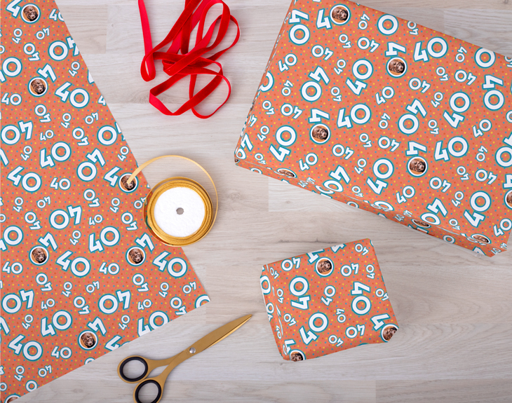 Cuarenta años no se cumplen en cualquier momento, por eso el regalo debe ser muy especial. Este papel de regalo personalizado te servirá como envoltorio de un regalo impresionante. Personalízalo con una foto y la colocaremos en los ceros de los números, creando un diseño espectacular. ¡Seguro que por un segundo se le olvida que cumple 40 años! Recuérdale que todavía es muy joven con detallazos como este. Tiene el grosor ideal para que puedas envolver fácilmente tus regalos. No se trasparenta para que no se vea la sorpresa. Grosor: 80gr Calidad impresión: fotográfico Importante: el papel se entrega como un producto más, no se envuelven otros productos con él.