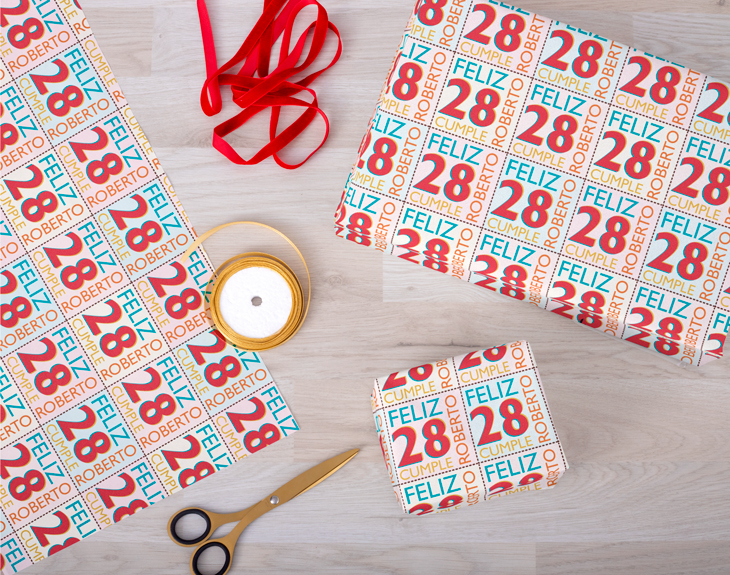 Nuestro rollo de papel personalizado es perfecto para sorprender en un cumpleaños. Si tienes un familiar, un amigo o pareja que están a punto de cumplir años, el regalo original debe estar envuelto con este papel de regalo. ¡Es una sorpresa enorme! Solo tienes que decirnos el nombre del cumpleañero y los años que cumple para que podamos personalizar el papel de regalo a la perfección. ¡Atrévete! Tiene el grosor ideal para que puedas envolver fácilmente tus regalos. Medida: 160x70cm Grosor: 80gr Calidad impresión: fotográfica. Importante: el papel se entrega como un producto más, no se envuelven otros productos con él.