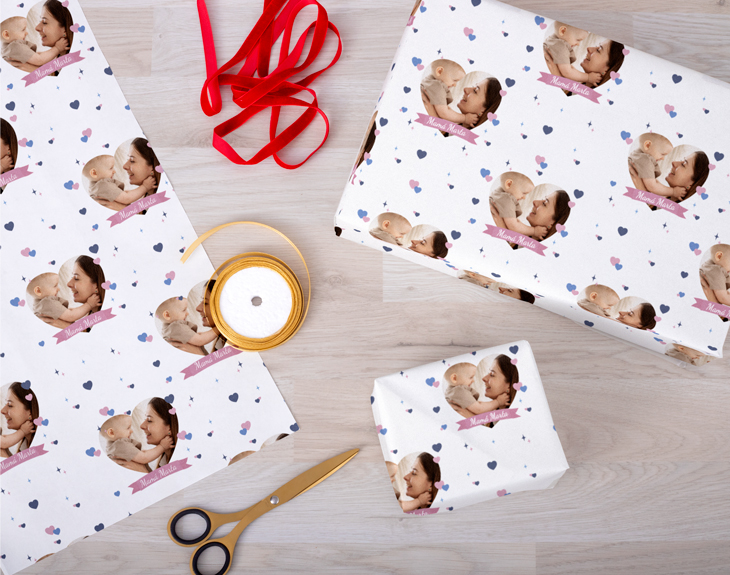 Está claro que mamá se merece siempre lo mejor. Por estar ahí cuando más la necesitamos, por darnos los mejores consejos, por apoyarnos en todo momento y por ser la mejor, si le vas a hacer un regalo, este tiene que estar a la altura. Por eso, la mejor forma de dejar a tu madre sin palabras en esa fecha tan especial es con este papel de regalo personalizado tan guay. Es genial para envolver ese regalo que le has comprado y sorprenderla incluso antes de que lo vea. ¡Es lo más! Olvídate de los típicos y aburridos papeles de regalo y hazte con el envoltorio más original del mundo hecho especialmente para mamá. Sin duda, se quedará sin palabras antes de abrir el regalo porque este papel será único y nadie tendrá uno igual. Además, podrás personalizarlo para que vea vuestra foto favorita y también lea el texto que has querido escribirle. Aprovecha su cumpleaños o el Día de la Madre para que se sienta la persona más importante y querida. ¡Le encantará! Para personalizar este papel de regalo, primero añade el producto al carrito. Después, entrarás en el área de personalización donde podrás añadir tanto la foto como el texto que quieras y colocarlo totalmente a tu gusto. Es muy sencillo y lo harás enseguida. ¡Tendrás el mejor envoltorio para regalos del mundo! El papel es de alta calidad con el grosor ideal para que puedas envolver fácilmente tus regalos. No se trasparenta para que no se vea la sorpresa. Tamaño: 160 x 70 cm. Grosor: 80 gr. Calidad impresión: fotográfica. Importante: el papel se entrega como un producto más, no se envuelven otros productos con él.