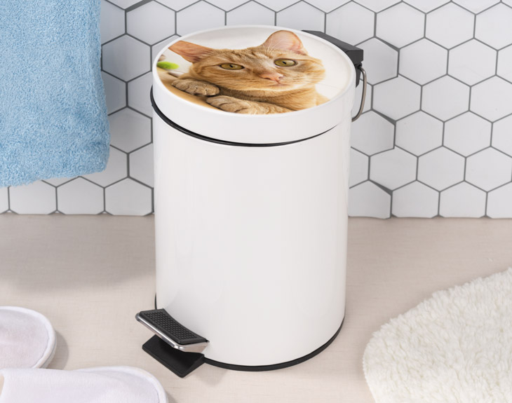 Rememora tus mejores momentos incluso a la hora de usar la papelera en el baño. Una papelera personalizada como esta te vendrá de lujo para hacer que la hora del baño sea aún más única. ¡Podrás incluir la imagen o el diseño que quieras en la tapa! ¿Por qué no colocar una cubo de basura de metal con diseño de foto como esta debajo del lavabo? ¡Así siempre tendrás una sonrisa! Esta papelera está hecha de metal y cuenta con una altura de 26 centímetros y un diámetro tanto en su tapa como en su base de 17 centímetros de diámetro. ¡Incluye un pedal con el que podrás abrir la papelera sin problema! Este regalo original será el más sorprendente para esa persona que está constantemente utilizando la papelera a la hora de lavarse los dientes o ir al baño. ¿Lo mejor? Podrás personalizarla con la foto que quieras. Al añadir el producto al carrito encontrarás la plantilla, en el interior del área de personalización. ¡Sube la foto que quieras y ajústala para crear un diseño de lo más chulo! Material: metal. Medidas: 26 x 17 centímetros.