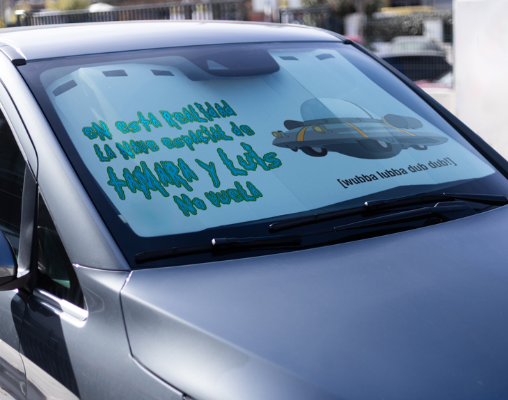 Parasol personalizado para el coche, perfecto para los fans de las aventuras espaciales. Si tu coche es como una nave espacial, necesitas este parasol. Y si es para hacer un regalo original, aprovecha para recordarle a tu amigo o amiga que no puede conducir su coche como lo haría un alienígena. En cualquier caso, es el parasol más legendario de cualquiera de las realidades del multiverso. Tenemos dos tamaños, si hablamos del parasol de cartón: el grande de 140 cm x 80 cm, apto para monovolumen y camionetas, y el pequeño de 128 cm x 61 cm, pensado para turismos. Elige el que mejor te venga. Además, si hablamos del parasol metálico, tenemos otras dos medidas más: el pequeño de 126 cm x 60 cm, ideal para coches, y el grande de 180 cm x 90 cm, pensado para camiones y furgones. Material: cartón o metálico (a elegir). No incluyen ventosa.
