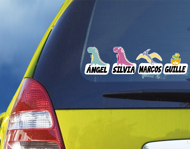 ¿Tus hijos no pueden parar de jugar con sus muñecos de dinosaurios? ¿A tus amigos les encanta la película de Parque Jurásico? Deja que los pterodáctilos y los triceratops te acompañen allá donde vayas con estas originales pegatinas personalizadas. Elige entre 80 de los más monísimos y variados dinosaurios. Para los mas pequeños, ¡tenemos la versión de bebé con el huevo rompiéndose como si estuviera naciendo! Crea tu propia familia de dinosaurios con hasta 6 personajes juntos en la misma línea, ¡para las familias más numerosas! Este puede ser el regalo original para que tus padres o hijos os tengan siempre presentes o para darle un toque original a vuestro piso compartido. Puedes pegarlo donde sea, ya que el ancho será de aproximadamente 30 centímetros en función de los personajes que añadas, mientras que el alto tendrá unos 16 centímetros. Podrás pasear estos monísimos dinosaurios incluso debajo de la lluvia, ya que el pack de pegatinas es apto para exteriores y tiene una durabilidad aproximada de 2 años. ¡Sácate la mejor sonrisa cada vez que veas la tapa de tu ordenador o las ventanas de tu coche!
