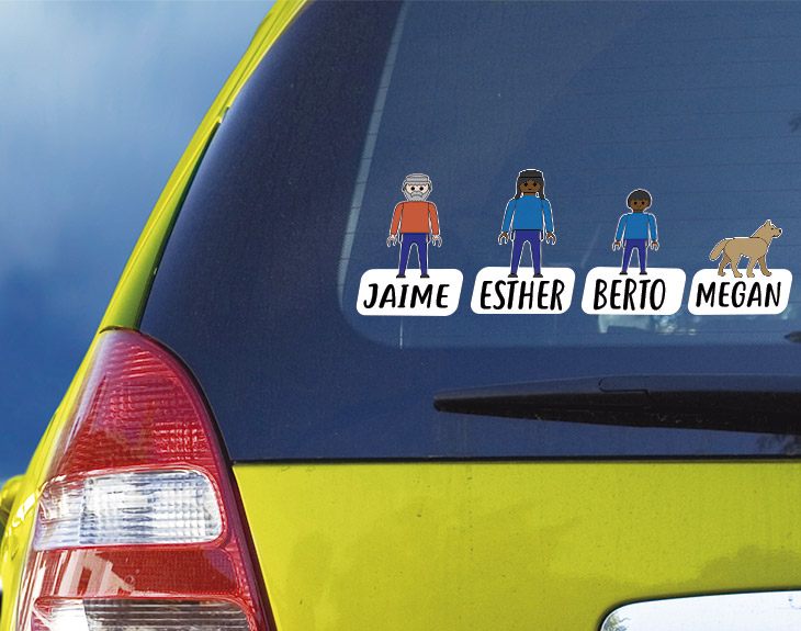 ¿Quién no ha jugado con los míticos Playmobil? Estos pequeños muñecos armados por piezas y tantos modelos han entretenido a las generaciones de tus abuelos, tus padres, y seguro que lo seguirán haciendo muchos años más. Por ello, será un detalle mágico que conviertas a tu familia o amigos en Playmobil con estas pegatinas personalizadas. Son el mejor complemento para llevar en el coche familiar o en la puerta de vuestro piso o habitación. ¡Podrás escribir vuestros nombres debajo de cada personaje! Con este regalo original seguro que aciertas, ya que cualquier persona a la que se lo regales le encantará verse reflejada en estos icónicos muñecos. Ya sea que la lleves en tu bolsa del ordenador o en la mochila del inglés o la universidad, este set de pegatinas resistirá bien pegado ya que son aptas para exteriores y tienen una durabilidad de unos 2 años. Todo el mundo conocerá así a las personas que más quieres de una manera divertida. ¡Hasta puedes añadir mascotas!