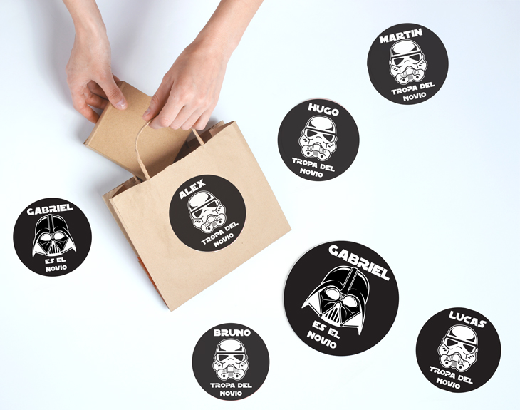 ¿Preparando una despedida de soltero/a épica? Si sois fans de la saga más famosa de la galaxia, estas pegatinas personalizadas con diseño "Star Wars" os van a flipar. Dales un toque galáctico a los regalos, decoraciones o detalles de la fiesta con estas pegatinas únicas, personalizadas con el texto que quieras y con personajes míticos del universo Star Wars. ¡Quedarán geniales! Están disponibles en tres tamaños: 5, 10 o 15 cm, para que puedas usarlas como más te guste. Todas las pegatinas del pedido serán del mismo tamaño, así que elige el que mejor encaje con tu idea. Haz que la despedida sea de otro planeta con un detalle original, personalizado y con mucho sentido del humor. Importante: Están fabricadas en vinilo resistente al agua y a los rayos UV, perfectas para cualquier tipo de celebración.