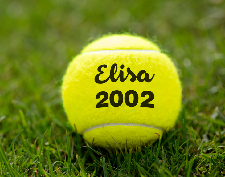 • Pelota de tenis/pádel personalizada . • Tarjeta recordatoria. Importante: no son pelotas de alta competición. Es un producto pensado con fines recreativos y lúdicos.