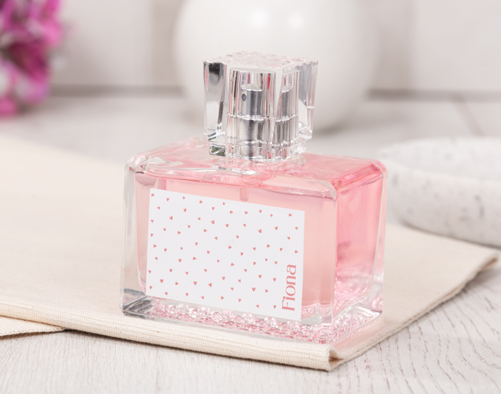 ¿Se acerca esa fecha tan señalada y todavía no sabes qué regalarle a la mujer más importante de tu vida? Si estás buscando el regalo más sofisticado, no tienes que buscar más: este perfume personalizado será el detalle más elegante con el que sorprender a esa persona especial, ya sea tu madre, tu novia o tu mejor amiga. Este perfume floral con toques frutales está hecho para conquistar a cualquier persona, tanto por su aroma disfrutable como por su presentación, gracias a un frasco de lo más refinado y distinguido, y con unas medidas de 8 centímetros de largo por 9 centímetros de alto. ¡Podrá llevarlo a cualquier viaje! No se nos ocurre un regalo original para cumpleaños o aniversarios más perfecto que este. ¡Incluso será una gran sorpresa para el Día de la Madre! Este diseño repleto de corazoncitos es perfecto para ellas. ¡Solo tendrás que añadir el producto al carrito y entrar en el área de personalización! Clica sobre el cuadro de texto para escribir el nombre de esa gran mujer. Notas de salida: pera, bergamota, mandarina. Notas medias: vainilla, orquídea, rosa negra. Notas de fondo: Pachulí, Papiro, Cumarina, Regaliz Capacidad: 100ml Medidas aproximadas: 8cm x 9cm x 5cm