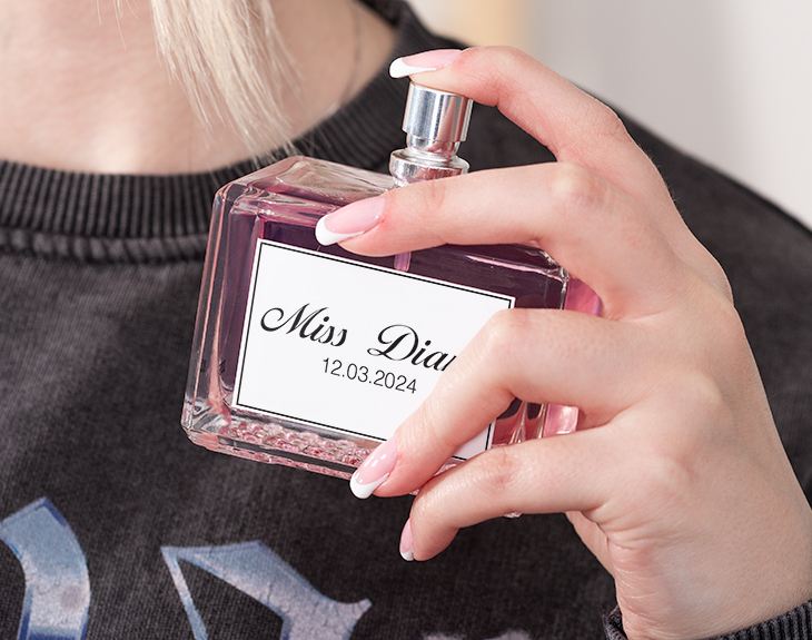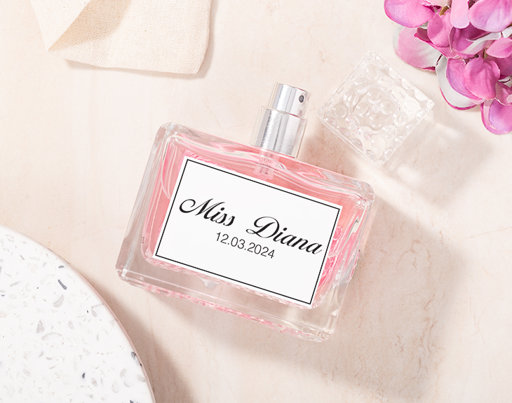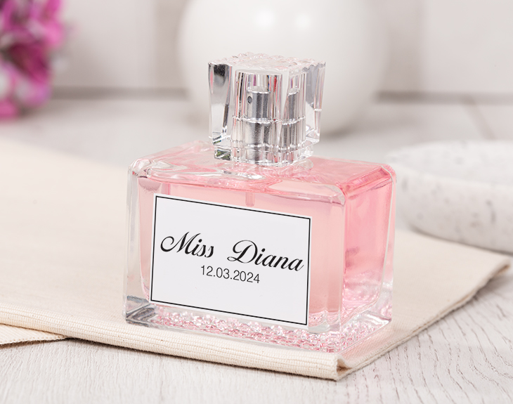 • Perfume de mujer personalizado. • Tarjeta recordatoria