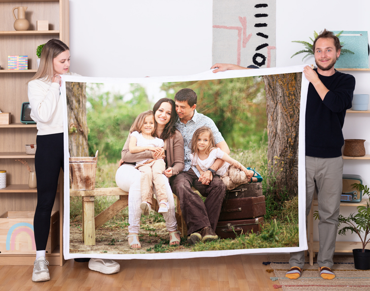 Debido al gran tamaño de este producto, debemos de tener en cuenta que será necesaria una fotografía de buena calidad para que el resultado sea nítido y fiel a la imagen inicial. Recomendamos que se personalice con una fotografía de, al menos,