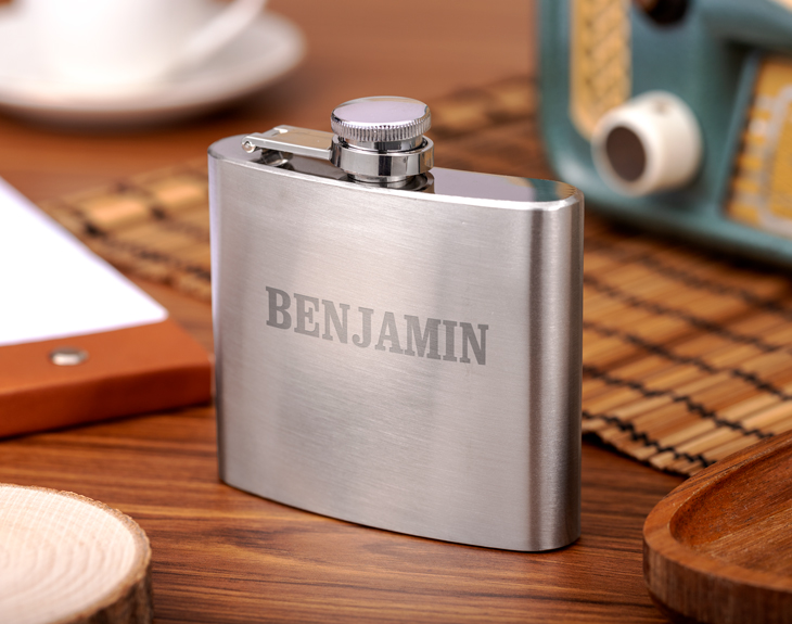 Solo hay una cosa más elegante que una petaca: una petaca grabada. Personalice este producto con el texto que quieras y conviértete en el bebedor más sofisticado del lugar. Medidas aproximadas: 9,5 x 9,5cm Capacidad: 5 onzas (aproximadamente 150 ml).
