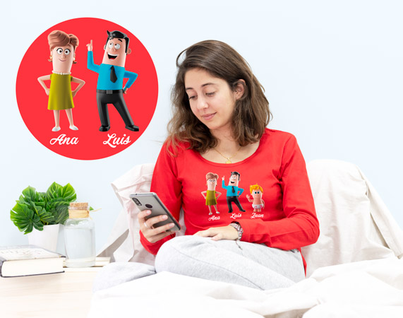 Si la familia es lo tuyo y quieres darle una sorpresa en invierno o en verano para que todos durmáis con el mismo pijama, este regalo puede ser una locura. Nuestro pijama personalizado es perfecto para que elijas los personajes que quieras, les pongas nombre y hagas feliz a toda la familia. ¡Es genial! Puedes escoger entre pijamas de verano, de invierno, de adultos e infantiles. Material: - Camiseta invierno: 100% algodón (excepto color gris: 85% algodón / 15% viscosa). - Camiseta verano: 100% algodón (excepto color gris: 85% algodón / 15% viscosa). - Pantalón invierno: 100% algodón. - Pantalón verano: 100% algodón. Importante: El color de los nombres variará según el color de la camiseta que elijas: Nombres en blanco: - Camisetas azules de invierno y verano - Camisetas rojas de invierno y verano - Camisetas negras de invierno y verano - Camisetas rosas de invierno Nombres en negro: - Camisetas blancas de invierno y verano - Camisetas grises de invierno y verano - Camisetas amarillas de verano - Camisetas verdes de verano - Camisetas rosas de verano Importante: a partir de 6 personajes, se distribuirán en dos filas. Es decir: - Familia de 6 personajes: 3 en la fila superior, y 3 en la inferior. - Familia de 7 personajes: 4 en la fila superior, y 3 en la inferior. - Familia de 8 personajes: 4 en la fila superior, y 4 en la inferior. Importante: Las medidas son aproximadas, pueden variar 5cm por encima o por debajo. Importante: el tono de los colores puede variar en intensidad según stock