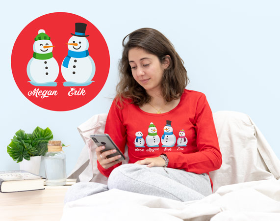 Nuestro pijama personalizado es perfecto para que en invierno también sientas un poquito de calor y, sobre todo, muchísimo amor. Es un regalo original perfecto para disfrutar con toda tu familia en la mejor ocasión posible: todos juntos y con pijamas molones. Elige los muñecos que quieras y ponles nombres. Puedes escoger entre pijamas de verano, de invierno, de adultos e infantiles. Material: - Camiseta invierno: 100% algodón (excepto color gris: 85% algodón / 15% viscosa). - Camiseta verano: 100% algodón (excepto color gris: 85% algodón / 15% viscosa). - Pantalón invierno: 100% algodón. - Pantalón verano: 100% algodón. Importante: El color de los nombres variará según el color de la camiseta que elijas: Nombres en blanco: - Camisetas azules de invierno y verano - Camisetas rojas de invierno y verano - Camisetas negras de invierno y verano - Camisetas rosas de invierno Nombres en negro: - Camisetas blancas de invierno y verano - Camisetas grises de invierno y verano - Camisetas amarillas de verano - Camisetas verdes de verano - Camisetas rosas de verano Importante: a partir de 6 personajes irán distribuidos en dos filas. Es decir: - Familia de 6 personajes: 3 en la fila superior, y 3 en la inferior. - Familia de 7 personajes: 4 en la fila superior, y 3 en la inferior. - Familia de 8 personajes: 4 en la fila superior, y 4 en la inferior. Importante: Las medidas son aproximadas, pueden variar 5cm por encima o por debajo. Importante: el tono de los colores puede variar en intensidad según stock