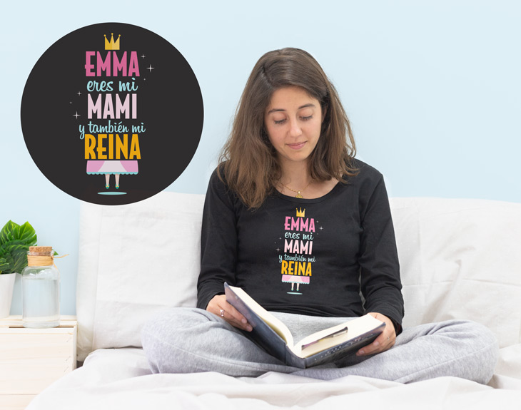 Si en tu casa está claro que reina tu madre, este pijama personalizado es perfecto para darle una gran sorpresa. Solamente necesitamos que nos digas su nombre para insertarlo en este diseño tan especial, y harás que tu madre se sienta la mujer más querida del mundo. Y es que, hacer feliz a las personas que queremos es mucho más fácil de lo que parece. Basta con pequeños detalles como este con el que demostrarles lo importantes que son en nuestra vida. Por eso, ha llegado el momento de que se lo demuestres a la mujer más especial del mundo...¡tu madre! Material: - Camiseta invierno: 100% algodón (excepto color gris: 85% algodón / 15% viscosa). - Camiseta verano: 100% algodón (excepto color gris: 85% algodón / 15% viscosa). - Pantalón invierno: 100% algodón. - Pantalón verano: 100% algodón. Importante: Las medidas son aproximadas, pueden variar 5cm por encima o por debajo. Importante: el tono de los colores puede variar en intensidad según stock