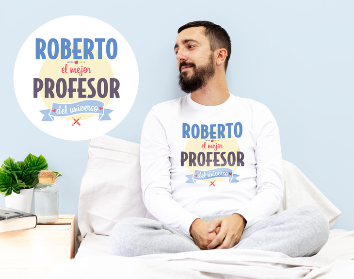 ¿Queréis agradecerle a vuestro profe todo lo que os ha enseñado este año? Entonces, este pijama personalizado es el regalo perfecto para dejarle boquiabierto. Aprovechad el final de las clases para darle las gracias a vuestro profe por todo lo que habéis aprendido en sus clases y para decirle lo mucho que valoráis todo su esfuerzo y trabajo. Seguro que le conseguís sacar una sonrisa de oreja a oreja y este pijama se convierte en su favorito. Para personalizarlo, solo tendréis que escoger entre pijamas de verano, de invierno, de adultos e infantiles, además de escoger el color que creáis que más le va a gustar a vuestro profe. Solo tendréis que seleccionar el tipo, color y talla del pijama y decirnos cual es el nombre de vuestro o vuestra profe. ¡Le encantará! Material: - Camiseta invierno: 100% algodón (excepto color gris: 85% algodón / 15% viscosa). - Camiseta verano: 100% algodón (excepto color gris: 85% algodón / 15% viscosa). - Pantalón invierno: 100% algodón. - Pantalón verano: 100% algodón. Importante: Las medidas son aproximadas, pueden variar 5cm por encima o por debajo. Importante: el tono de los colores puede variar en intensidad según stock