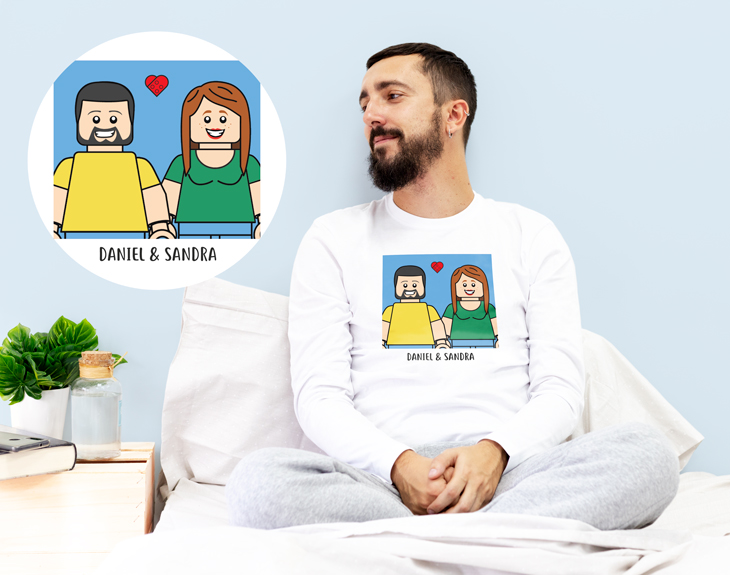 ¿Acaso puede haber algo más romántico que dormir todos los días junto al amor de tu vida? Si tu pareja no puede dormir sin ti cuando estás de viaje, contamos con el mejor producto posible para él o ella: este pijama personalizado es el detalle más colorido para estar siempre con esa persona a la que quieres con locura. ¡El regalo perfecto para los fans de Lego! No habrá regalo más romántico para tu amorcito que este pijama con diseño de Lego en pareja, un producto con el que podréis crear vuestros propios avatares. Nuestros pijamas están todos hechos de algodón, y podrás elegir entre las diferentes opciones con las que contamos en el desplegable: infantil de invierno, infantil de verano, adulto de invierno y adulto de verano. ¡También puede ser el mejor detalle para esa pareja tan colorida que tienes en tu vida! ¿Sabes qué es lo mejor de este regalo original? ¡Podréis crear vuestro propia figurita de Lego personalizada! Si tu novio/a siempre jugaba con estos sets de construcción en su infancia, seguro que le hará mucha ilusión verse a si mismo/a junto al amor de su vida. Añade el pijama que quieres al carrito y entra en el área de personalización para elegir la talla y el color de la camiseta. Después solo tendrás que entrar en el diseñador y escoger tanto el color del fondo para esta pareja Lego y, más tarde, diseñaros a vosotros mismos en este formato. ¡Podrás añadirle todas esas características que os hacen ser las personas que sois hoy en día! Material: - Camiseta invierno: 100% algodón (excepto color gris: 85% algodón / 15% viscosa). - Camiseta verano: 100% algodón (excepto color gris: 85% algodón / 15% viscosa). - Pantalón invierno: 100% algodón. - Pantalón verano: 100% algodón. Importante: las medidas son aproximadas, pueden variar 5cm por encima o por debajo. Importante: el tono de los colores puede variar en intensidad según stock