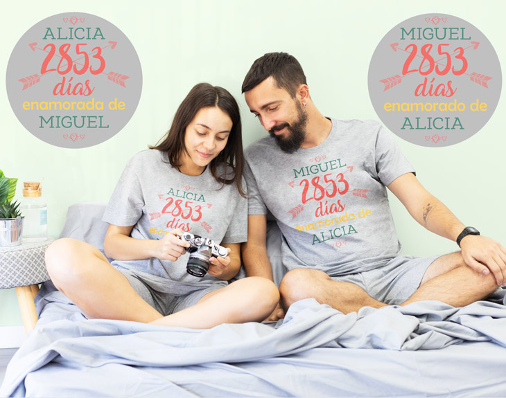 ¿Tienes contado todos y cada uno de los días que llevas viviendo en una nube junto a tu pareja? Si estáis enamorados hasta las trancas y queréis celebrarlo de una manera muy especial, nuestros pijamas para parejas personalizados son una gran opción. Sorprende a la persona que te hace sonreír cada mañana con estos pijamas tan especiales...¡Se quedará sin palabras al ver que te acuerdas de todos los momentos que habéis vivido juntos! Material: - Camiseta invierno: 100% algodón (excepto color gris: 85% algodón / 15% viscosa). - Camiseta verano: 100% algodón (excepto color gris: 85% algodón / 15% viscosa). - Pantalón invierno: 100% algodón. - Pantalón verano: 100% algodón. Importante: Las medidas son aproximadas, pueden variar 5cm por encima o por debajo. Importante: el tono de los colores puede variar en intensidad según stock