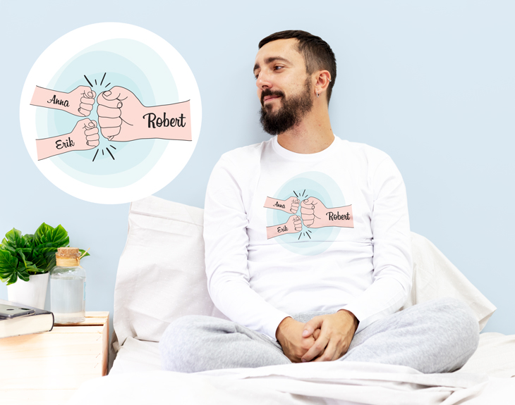 Hay familias que más que eso son un auténtico equipo. Todos juntos y unidos siempre yendo hacia el mismo objetivo y con los mismos valores. Si esta forma de pensar y de actuar en la vida, viene de la figura de papá, este pijama personalizado le encantará. Porque seguro que desde pequeño, tu padre te ha enseñado a luchar por eso que quieres y no rendirte nunca. Por eso, tiene el mensaje perfecto para vosotros, porque junto con papá... ¡formáis el equipo perfecto! Además, regalar un pijama siempre es un acierto en cualquier ocasión. Si quieres sorprenderle en fechas importantes como el Día del Padre o en su cumpleaños, no dudes que el mejor regalo que puedes hacerle es este original pijama. Además, podrás elegir qué tipo de pijama quieres: el de verano con manga corta y pantalón corto o el de invierno con manga larga y pantalón largo. ¡Ambos son comodísimos y seguro que le encantan a papá! Pero sin duda, lo mejor de este regalo es poder personalizar este pijama con un diseño de lo más entrañable. Escoge el número de puñitos que quieres poner en el diseño y el color de piel que más se asemeje a vosotros. Después añade los nombres que quieras mientras te mostramos una previsualización para que veas cómo queda en todo momento. Si es necesario, podrás ajustar el tamaño y disposición de los nombres para que quede perfecto. ¡El regalo más bonito del mundo! Material: - Camiseta invierno: 100% algodón (excepto color gris: 85% algodón / 15% viscosa). - Camiseta verano: 100% algodón (excepto color gris: 85% algodón / 15% viscosa). - Pantalón invierno: 100% algodón. - Pantalón verano: 100% algodón. Importante: Las medidas son aproximadas, pueden variar 5cm por encima o por debajo. Importante: el tono de los colores puede variar en intensidad según stock