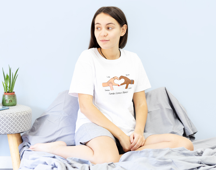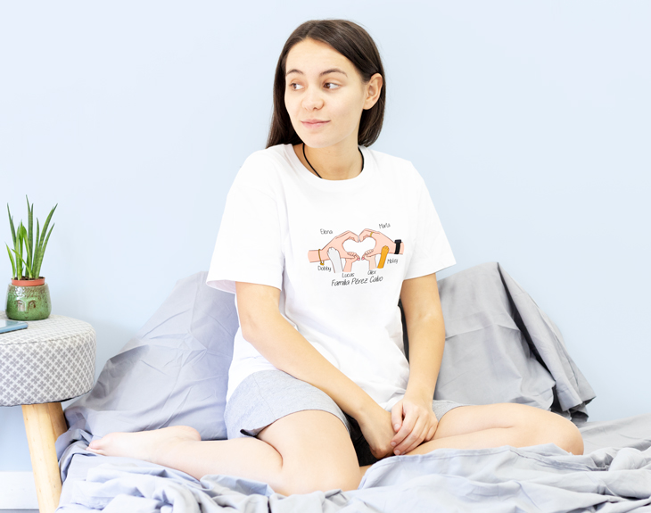 Seguro que tu familia y tú estáis súper unidos y os encanta pasar tiempo juntos haciendo planes que os divierten tanto fuera como dentro de casa. Por eso, todos los miembros de la familia necesitan este pijama personalizado, así seréis los más molones del mundo. Cada uno podrá tener su pijama, de invierno o verano, con este diseño tan único y personal que representará a la perfección a vuestra familia. ¡Será muy divertido ver cómo todos vais iguales! Si quieres sorprender a tu familia y hacerles un regalo único, práctico y diferente, este original pijama es un acierto seguro. Sorpréndeles en cualquier celebración con este detalle que le encantará a todos. Este diseño está pensado para todas las familias, porque podrás crear la tuya desde cero con todos los detalles que necesites. Estas manos serán las que representen a todos los miembros de la familia: mamás, papás, hermanos, hermanas y mascotas. ¡No importa cómo sea tu familia porque es única! Personaliza tu propio pijama para tener el más guay. Hacerlo es muy fácil. Elige qué tipo de pijama quieres y añade el producto al carrito. una vez hecho esto podrás acceder al apartado donde podrás crear tu diseño desde cero añadiendo todos los detalles que creas necesarios para que tu familia esté representada en estas bonitas manos. Con estos pijamas personalizados seréis la familia más divertida y unida del mundo. Importante: Podrás crear el diseño desde cero, eligiendo todos los detalles necesarios (color de la piel, accesorios para las manos, mezclar manos con patitas de gato o perro, pintar las uñas) Material: - Camiseta invierno: 100% algodón (excepto color gris: 85% algodón / 15% viscosa). - Camiseta verano: 100% algodón (excepto color gris: 85% algodón / 15% viscosa). - Pantalón invierno: 100% algodón. - Pantalón verano: 100% algodón. Importante: El color de los nombres variará según el color de la camiseta que elijas: Nombres en blanco: - Camisetas azules de invierno y verano - Camisetas rojas de invierno y verano - Camisetas negras de invierno y verano - Camisetas rosas de invierno Nombres en negro: - Camisetas blancas de invierno y verano - Camisetas grises de invierno y verano - Camisetas amarillas de verano - Camisetas verdes de verano - Camisetas rosas de verano Importante: Las medidas son aproximadas, pueden variar 5cm por encima o por debajo. Importante: el tono de los colores puede variar en intensidad según stock