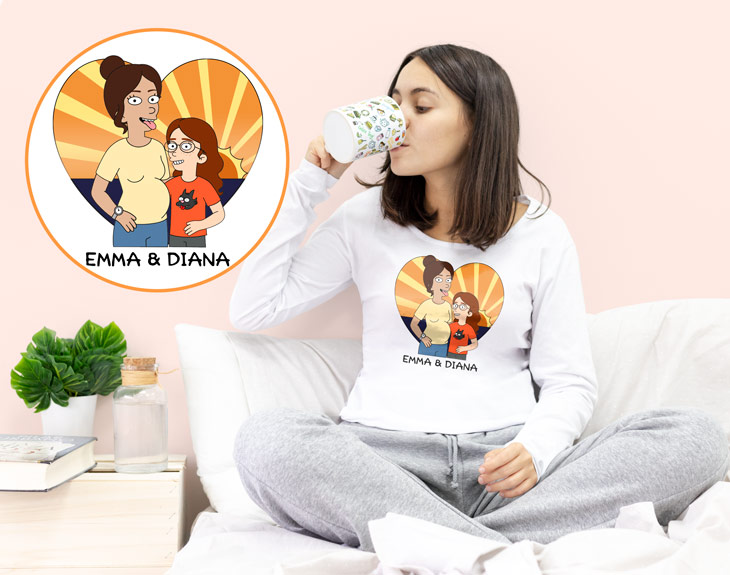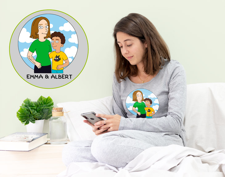 Sabemos que las madres no paran en todo el día, de aquí para allá, solucionando todos los problemas y siempre al pie del cañón. Por estas y muchísimas otras cosas más se merecen de todo, como por ejemplo un regalo único y diferente como este pijama personalizado al más puro estilo Springfield. Este pijama está pensado para todas esas madres que han disfrutado alguna vez de esta famosa serie con sus hijos y les gustaría verse como un auténtico personaje. Y es el regalo perfecto porque no hay mejor sensación en el mundo, y más para una madre, que ponerse el pijama después de un largo día. Y este, sin duda, ser su favorito. Sorprender a nuestras madres, a veces, puede ser un poco complicado. Pero es en fechas señaladas como el Día de la Madre o su cumpleaños cuando lo tenemos que dar todo y sorprenderla. Este original pijama es la opción con la que seguro que aciertas y conseguirás dejar a tu madre sin palabras. Además, podrás elegir el tipo de pijama que más te guste: con pantalón corto para verano o con pantalón largo para invierno, en ambos la personalización estará en la camiseta. ¡Tú decides cuál quieres! Pero antes de que mamá pueda estrenar este súper regalo, no te olvides que tienes que personalizar tu pijama. ¡Es muy fácil de hacer! Elige qué pijama quieres, añádelo al carrito y ahí podrás comenzar a crear tus personajes Simpson desde cero. Añade todos los detalles que necesites y elige también el fondo que más te guste de los que te ofrecemos. Una vez hechos todos los pasos, vuestro diseño ya estará listo. Material: - Camiseta invierno: 100% algodón (excepto color gris: 85% algodón / 15% viscosa). - Camiseta verano: 100% algodón (excepto color gris: 85% algodón / 15% viscosa). - Pantalón invierno: 100% algodón. - Pantalón verano: 100% algodón. Importante: El color de los nombres variará según el color de la camiseta que elijas: Nombres en blanco: - Camisetas azules de invierno y verano - Camisetas rojas de invierno y verano - Camisetas negras de invierno y verano - Camisetas rosas de invierno Nombres en negro: - Camisetas blancas de invierno y verano - Camisetas grises de invierno y verano - Camisetas amarillas de verano - Camisetas verdes de verano - Camisetas rosas de verano Importante: Las medidas son aproximadas, pueden variar 5cm por encima o por debajo. Importante: el tono de los colores puede variar en intensidad según stock