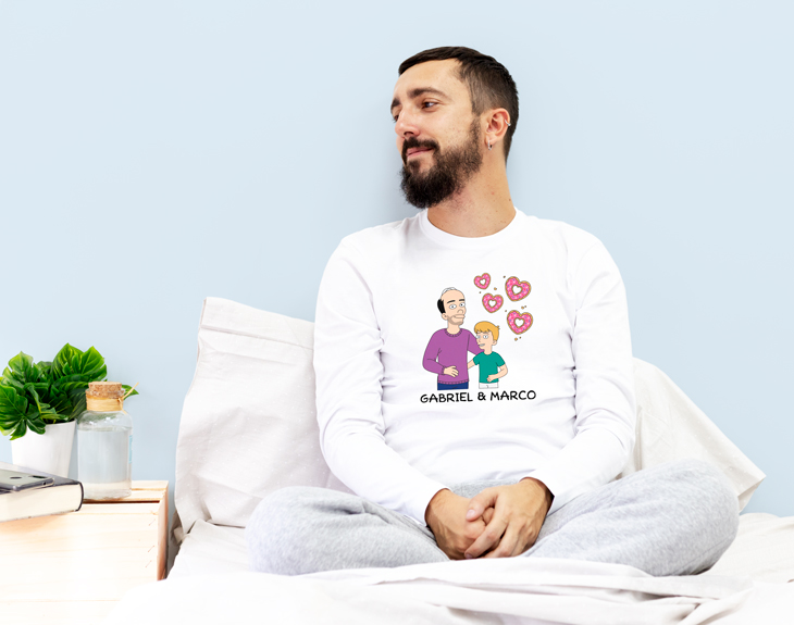 No hay nada mejor que llegar a casa después de un largo día de trabajo haciendo mil cosas y cambiarte de ropa para ponerte un pijama súper cómodo. Esa sensación de comodidad no hay nada que la iguale. Por ello, si se acerca alguna fecha especial como el Día del Padre, un cumpleaños o alguna otra ocasión, este pijama con diseño Cartoon es el regalo perfecto que le podrías hacer a tu papá. Es ideal para que se pueda poner cómodo al llegar después de un día entero fuera de casa. Imagina la ilusión que le hará veros en estos pijamas tan chulos. Tenemos pijamas para cualquier época del año, ya sea verano o invierno, puedes elegir entre pantalón corto, pantalón largo o manga corta o manga larga. Además, también hay la posibilidad de elegir el color de la parte de arriba del pijama. Sin duda, le encantará. ¡Vosotros seréis los protagonistas de vuestra propia serie de animación! Lo más especial de este pijama es que es personalizable, lo que significa que tú diseñas estos personajes animados. Se puede elegir entre un montón de opciones diferentes de accesorios y rasgos, seguro que consigues que estos dibujos os representen. A la hora de personalizar este producto, lo primero es añadirlo al carrito y entrar al área de personalización. Una vez ahí, tendrás que crear a los avatares desde cero, ¡ya verás que divertido! Todo lo demás queda en nuestras manos y pronto podrás regalarle a tu padre este pijama tan chulo. Material: - Camiseta invierno: 100% algodón (excepto color gris: 85% algodón / 15% viscosa). - Camiseta verano: 100% algodón (excepto color gris: 85% algodón / 15% viscosa). - Pantalón invierno: 100% algodón. - Pantalón verano: 100% algodón. Importante: El color de los nombres variará según el color de la camiseta que elijas: Nombres en blanco: - Camisetas azules de invierno y verano - Camisetas rojas de invierno y verano - Camisetas negras de invierno y verano - Camisetas rosas de invierno Nombres en negro: - Camisetas blancas de invierno y verano - Camisetas grises de invierno y verano - Camisetas amarillas de verano - Camisetas verdes de verano - Camisetas rosas de verano Importante: Las medidas son aproximadas, pueden variar 5cm por encima o por debajo. Importante: el tono de los colores puede variar en intensidad según stock