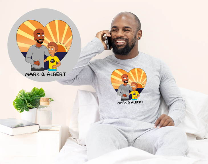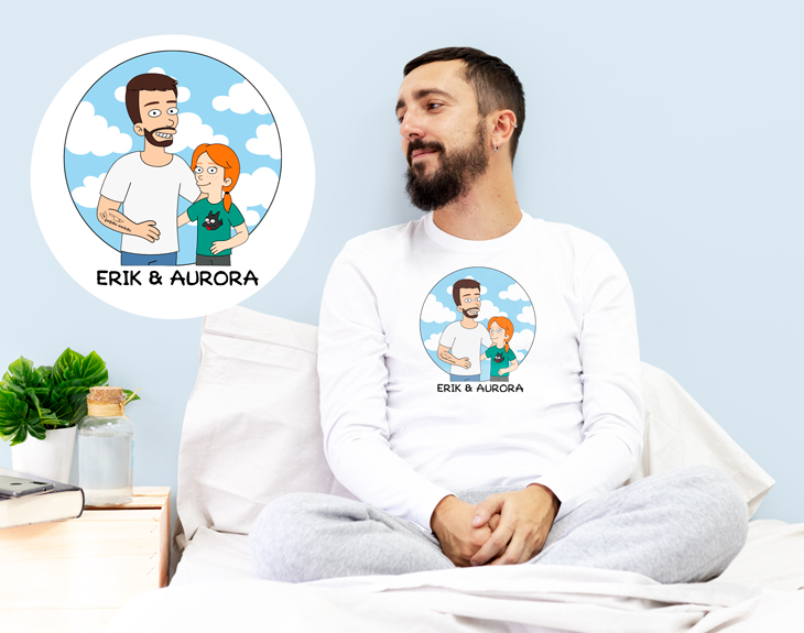No hay mejor sensación en el mundo que llegar a casa después de una larga jornada de trabajo y ponerse el pijama. Seguro que a cualquier padre le encanta hacer esto cuando llega del trabajo o de hacer miles de cosas. Por eso, si no es capaz de decir adiós a ese pijama aburrido y viejo que siempre se pone, es hora de que le regales este pijama personalizado porque es el mejor del mundo. Estamos seguros de que tiene muchos pijamas, pero ninguno tan guay como este, porque cada vez que se lo ponga podrá verá el divertido diseño que tiene en la camiseta, donde aparece como un auténtico personaje de la serie más famosa de la televisión: ¡Los Simpson! En fechas señaladas como el Día del Padre o su cumpleaños, seguro que te gustaría hacerle un regalo muy especial y diferente y este original pijama con diseño Simpson es el regalo perfecto con el que no vas a fallar nunca. Sea verano o invierno, tenemos pijamas para cualquier época del año. Lo mejor de todo, es que podrás personalizar el que más te guste: con pantalón corto, con pantalón largo, manga corta o manga larga. ¡Tú eliges! Pero antes de que papá pueda estrenar este súper regalo, no te olvides que tienes que personalizar tu pijama. ¡Es muy sencillo de hacer! Elige qué pijama quieres, añádelo al carrito y ahí podr´s comenzar a crear tus personajes Simpson desde cero. Añade todos los detalles que necesites y elige también el fondo que más te guste, todos son muy chu chu chulis. Una vez hechos todos los pasos, vuestro diseño ya estará listo. Material: - Camiseta invierno: 100% algodón (excepto color gris: 85% algodón / 15% viscosa). - Camiseta verano: 100% algodón (excepto color gris: 85% algodón / 15% viscosa). - Pantalón invierno: 100% algodón. - Pantalón verano: 100% algodón. Importante: El color de los nombres variará según el color de la camiseta que elijas: Nombres en blanco: - Camisetas azules de invierno y verano - Camisetas rojas de invierno y verano - Camisetas negras de invierno y verano - Camisetas rosas de invierno Nombres en negro: - Camisetas blancas de invierno y verano - Camisetas grises de invierno y verano - Camisetas amarillas de verano - Camisetas verdes de verano - Camisetas rosas de verano Importante: Las medidas son aproximadas, pueden variar 5cm por encima o por debajo. Importante: el tono de los colores puede variar en intensidad según stock