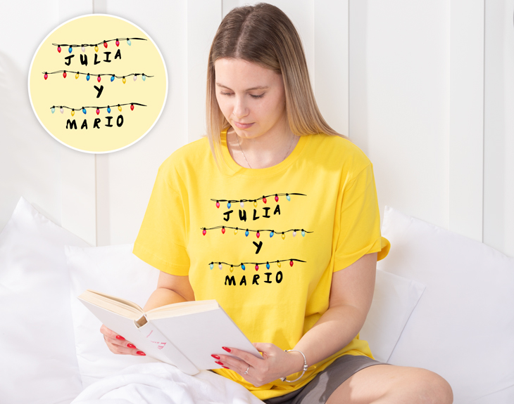 ¿Deborastéis todas las temporadas de Stranger Things? Si os enganchó desde el minuto uno y no pudistéis parar d verla hasta que terminasteis todas las temporadas, este pijama personalizado tiene vuestro nombre. ¿Recuerdas la escena en la que Will trata de contactar con su madre a través de las luces? Si es una de vuestros momentos favoritos, este pijama personalizado es el mejor regalo que le puedes hacer a tu compi de series. ¿No hay nada que os guste más que tumbaros en el sofá y engancharos a una serie? Si entre todas las que habéis visto Stranger Things marcó un antes y un después, este regalo original está hecho para vosotros. Solo necesitamos que nos digas los nombres para personalizarlo y será el mejor detalle del mundo...¡Seguro que le gusta muchísimo! Once, Dustin, Will, Mike, o incluso el Demogorgon, ¿cuál es vuestro personaje favorito? Material: - Camiseta invierno: 100% algodón (excepto color gris: 85% algodón / 15% viscosa). - Camiseta verano: 100% algodón (excepto color gris: 85% algodón / 15% viscosa). - Pantalón invierno: 100% algodón. - Pantalón verano: 100% algodón. Importante: Las medidas son aproximadas, pueden variar 5cm por encima o por debajo. Importante: el tono de los colores puede variar en intensidad según stock