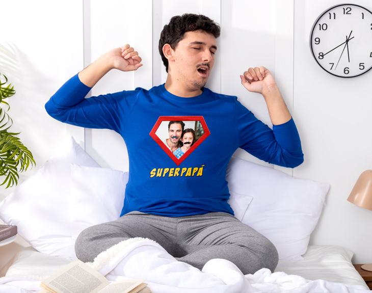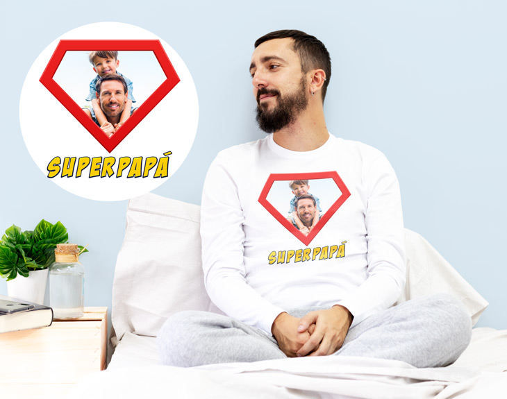 Si tu padre se parece más a un superhéroe que a un papá normal, este pijama personalizado está hecho para él. Y es que, esa paciencia, esas dosis interminables de amor y esa facilidad para resolver cualquier problema es algo de otro mundo. Por eso, sorprende al hombre de tu vida con un detalle así de increíble y harás que se vaya cada día a dormir con la sonrisa puesta. Solo tienes que escoger una fotografía que le guste para insertarla en este diseño tan especial...¡Se quedará sin palabras! Material: - Camiseta invierno: 100% algodón (excepto color gris: 85% algodón / 15% viscosa). - Camiseta verano: 100% algodón (excepto color gris: 85% algodón / 15% viscosa). - Pantalón invierno: 100% algodón. - Pantalón verano: 100% algodón. Importante: Las medidas son aproximadas, pueden variar 5cm por encima o por debajo. Importante: el tono de los colores puede variar en intensidad según stock