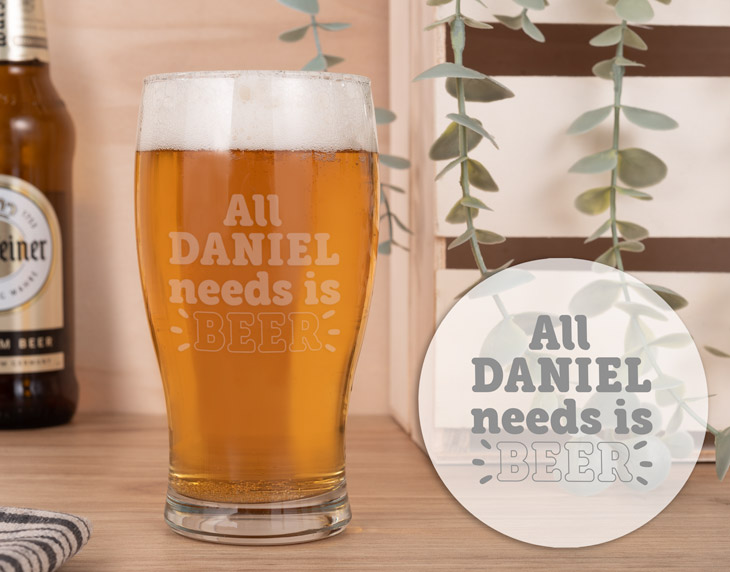 Una pinta solo se toma si eres cervecero. Por eso, este diseño está pensado para aquellas personas que pierden la cabeza sin su cerveza. ¿Tienes amigos a los que les pasa? Esta es tu oportunidad para darles una sorpresa original. Solo tendrás que decirnos un nombre y grabaremos la pinta con el mensaje más claro y conciso del mundo: all you need is beer. ¡Triunfarás con el regalo seguro! Tienes dos tamaños de pinta disponibles: - Pinta grande: Capacidad: 58 cl. Altura: 16 cm. - Pinta pequeña: Capacidad: 38 cl. Altura: 14 cm.
