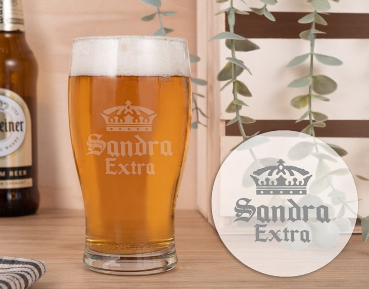 Si eres de las personas que nunca les falta en las fiestas una cerveza mexicana Corona al estilo guateque, tenemos la pinta de cerveza perfecta para ti; para que disfrutes de ese suave sabor y ese delicioso aroma tan único de esta cerveza. La pinta de cerveza es ideal para esta bebida ya que su boca es más ancha y permite que la espuma se adapte mejor y le de ese toque tan especial. Como sabemos que te encanta disfrutar en condiciones de esta cerveza, hemos incluido este diseño único con tu nombre. Así que, no esperes más y dinos como te llamas que nosotros haremos el resto. -Pinta: Capacidad: 58 cl. Altura: 16 cm. -Mini pinta: Capacidad: 38 cl. Altura: 14 cm.