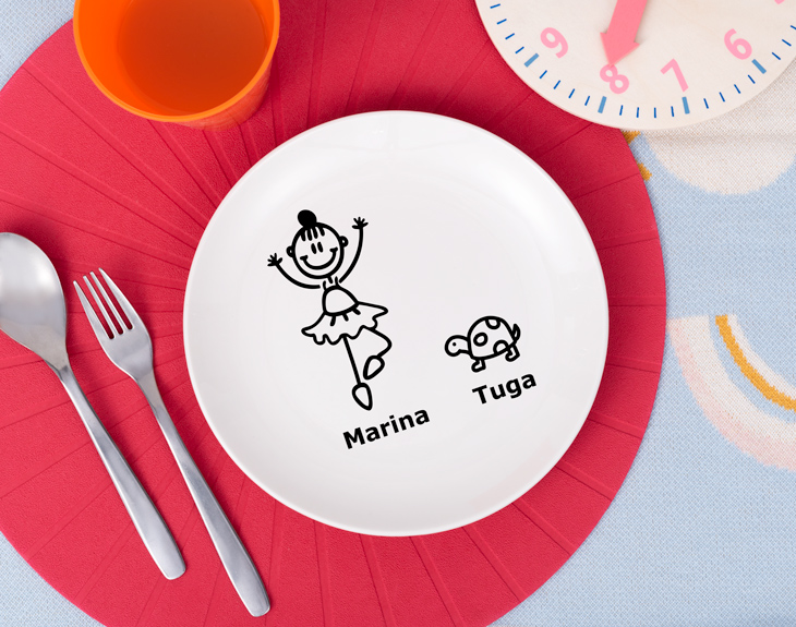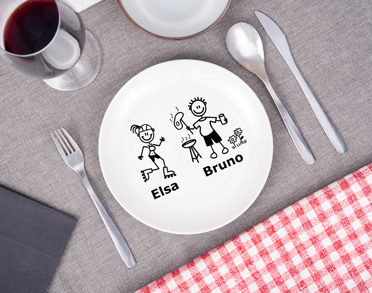 ¿Cuán diferente eres de tu familia? Seguro que a unos os gusta el deporte, a otros la música, a otros las plantas… Cada uno tiene su propio hobby, pero hay algo que os une a todos: ¡os encanta comer! Al final, es de los pocos momentos que compartís juntos. Por ello, qué mejor diseño para este plato de cerámica personalizado que un retrato de todos vosotros con vuestras aficiones favoritas. Así esas comidas serán aún más divertidas y bonitas cada vez que acabéis el plato y os veáis reflejados a vosotros mismos. No te conformes con la tradicional vajilla clásica y atrévete a crear tu propio juego de loza. Empezando por este plato de comida con nombre y diseño a color, puedes añadir varios personajes, cada uno con sus aficiones y nombres. ¡Seguro que encuentras a uno que se parece muchísimo a ti! Desde el carrito puedes seleccionar varios y escribir un nombre que irá debajo de cada uno. Qué mejor regalo original para el hogar de esa pareja que se acaba de casar que su propio plato personalizado con un divertido retrato suyo con las características que más les definen. Lo usarán en cada comida, cena o hasta merienda gracias a su tamaño medio. Apto para lavar a mano y lavavajillas a temperatura media. Diámetro: 20,5 cm Importante: nuestro equipo de personalización se encargará de ajustar la distribución de los personajes en el producto en función de su tamaño para que se vean lo mejor posible.